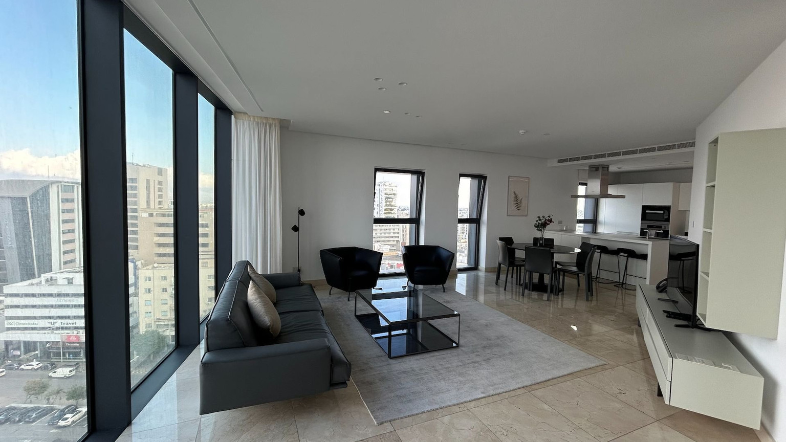 Discover an unparalleled living experience in this one-of-a-kind two bedroom apartment, nestled in the heart of the City Center. This luxurious residence offers mesmerizing views and features a spacious living room, a dining area and a fully fitted Italian kitchen opening to the covered veranda. The apartment boasts two well-sized bedrooms benefiting of ensuite facilities and a guest toilet.