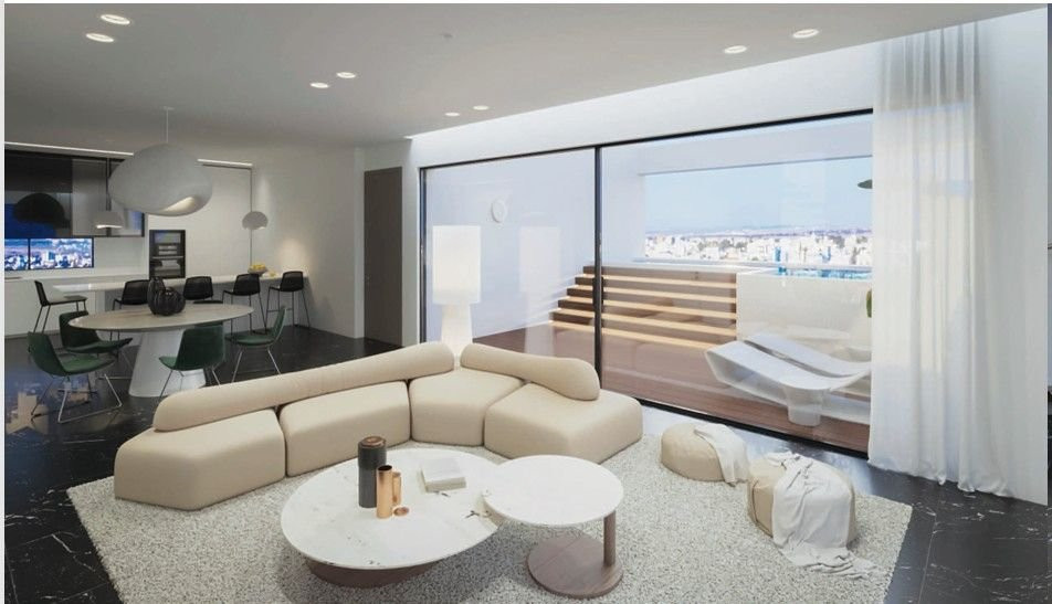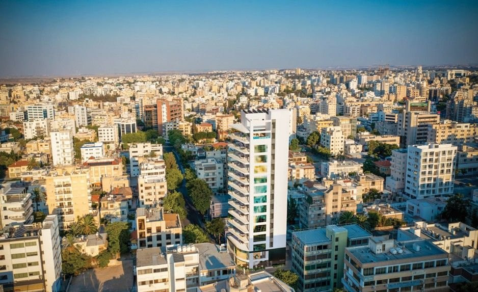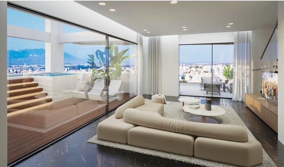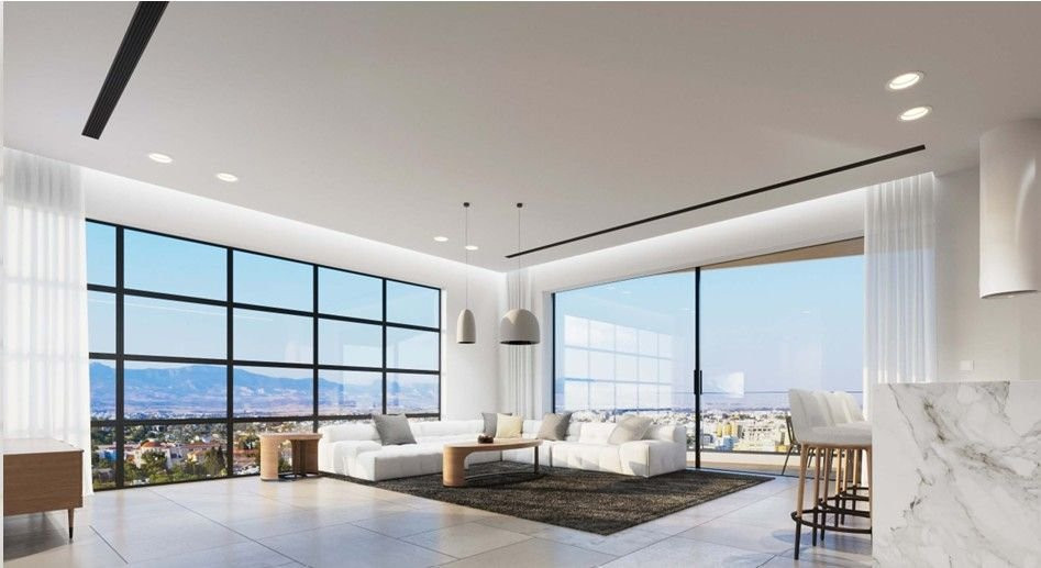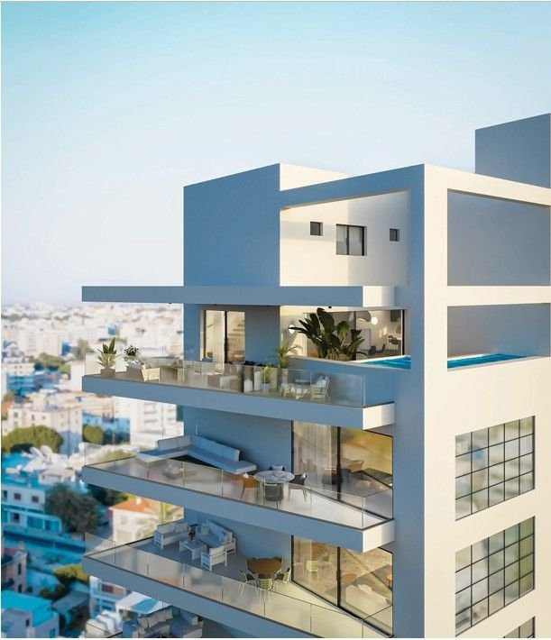 Under construction whole-floor three bedroom apartment for sale in the heart of Nicosia, designed to offer an elevated urban lifestyle. The floors between the 1st and 11th offer sophisticated apartments with a layout that includes two spacious bedrooms, a master bedroom with an ensuite bathroom and a walk-in closet, a modern kitchen, a living room, a dining area, and a guest bathroom. The building features two underground parking levels, ensuring abundant space and security for its residents. Also on the ground floor the property offer a variety of amenities, including shops, a welcoming reception area, and a modern gym, contribute to the overall comfort and convenience of the residence in a unique luxury living in the heart of Nicosia.