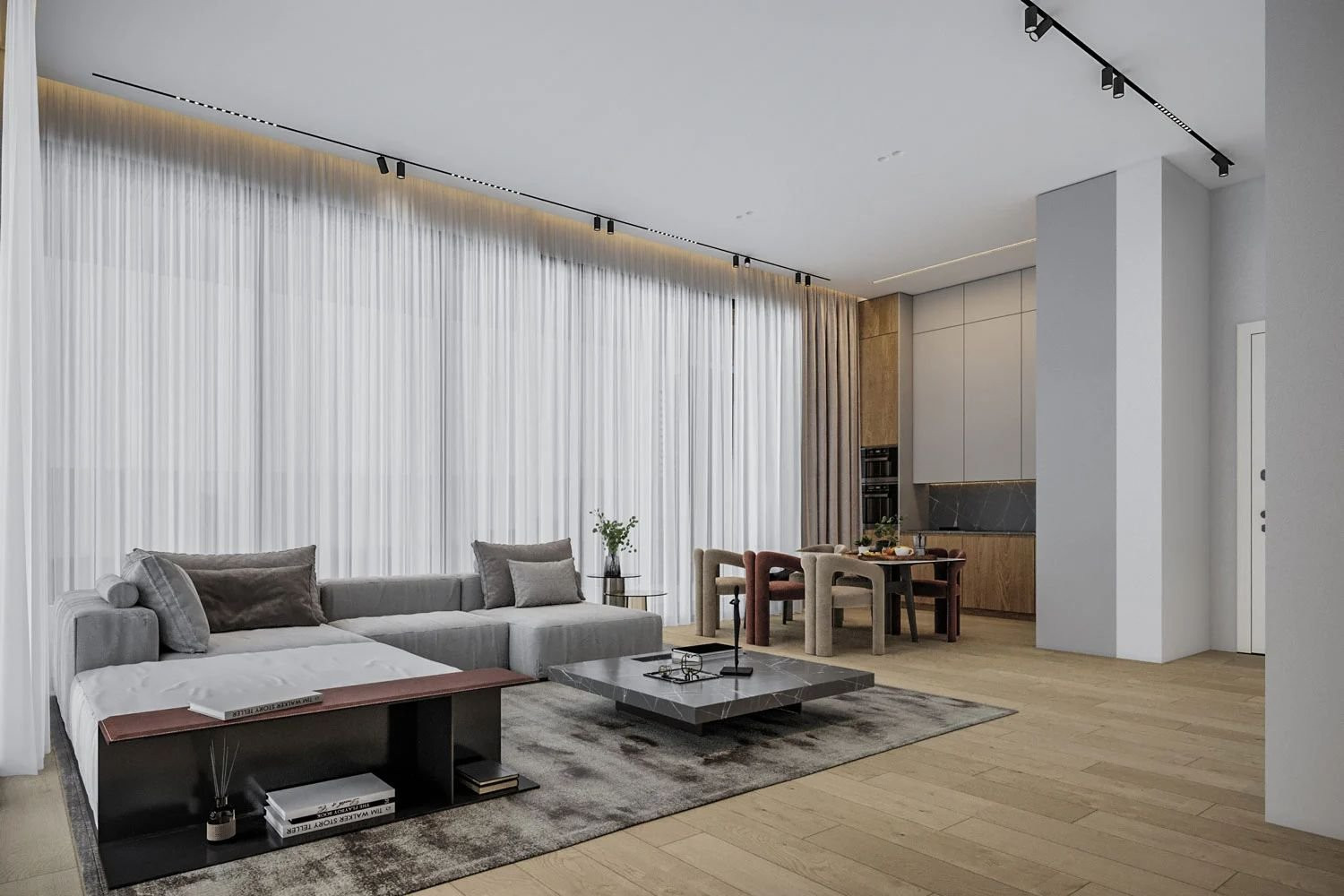 Introducing a luxurious two-bedroom apartment, currently under construction in the dynamic heart of Nicosia. This remarkable residence features a spacious open-plan living room with a dining area and a contemporary kitchen that seamlessly connects to a covered veranda, enhancing indoor-outdoor living. The apartment includes two generously sized bedrooms, with the master bedroom benefiting from en-suite facilities, alongside a second bathroom equipped with a toilet and shower for added convenience. Residents will enjoy a welcoming reception area with a concierge desk, exclusive access to a fully-equipped gym, and a private lounge. Situated in a prime location, this apartment provides easy access to the city's finest amenities, making it the ideal blend of luxury and convenience for your new home!