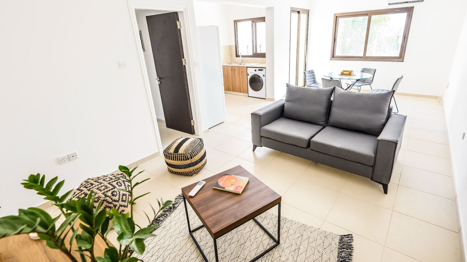 Spacious and bright two bedroom apartment for rent in a prime location in Aglantzia, Nicosia. The property is located just a short stroll from Akadimias park, satiriko theatre, and Larnakos Avenue, with easy access to all amenities. The property features a spacious open plan living/ dining and kitchen area with access to a covered veranda, guest toilet, main bathroom and two bedrooms. The property benefits form a covered parking space and a storage on the ground floor.