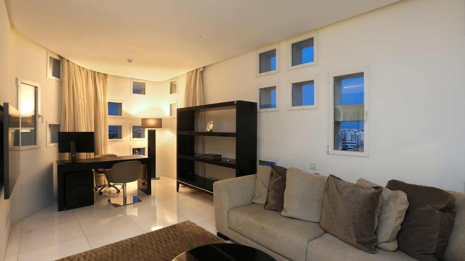 Discover unparalleled luxury in the heart of Nicosia with this exquisite full-floor residence in Jean Nouvel's iconic tower. Spanning 67 meters, this architectural marvel offers sweeping 180-degree city views, accentuated by floor-to-ceiling glazing.