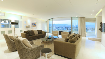 Discover unparalleled luxury in the heart of Nicosia with this exquisite full-floor residence in Jean Nouvel's iconic tower. Spanning 67 meters, this architectural marvel offers sweeping 180-degree city views, accentuated by floor-to-ceiling glazing.
